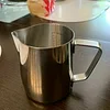 • WIDE RANGE OF USES - The milk frothing pitcher can help you froth or steam milk for lattes; measure liquids; serve milk or cream. This stainless steel milk frothing pitcher is perfect for water, juices, batter mixes, smoothies, and other pour-able item whether hot or cold.